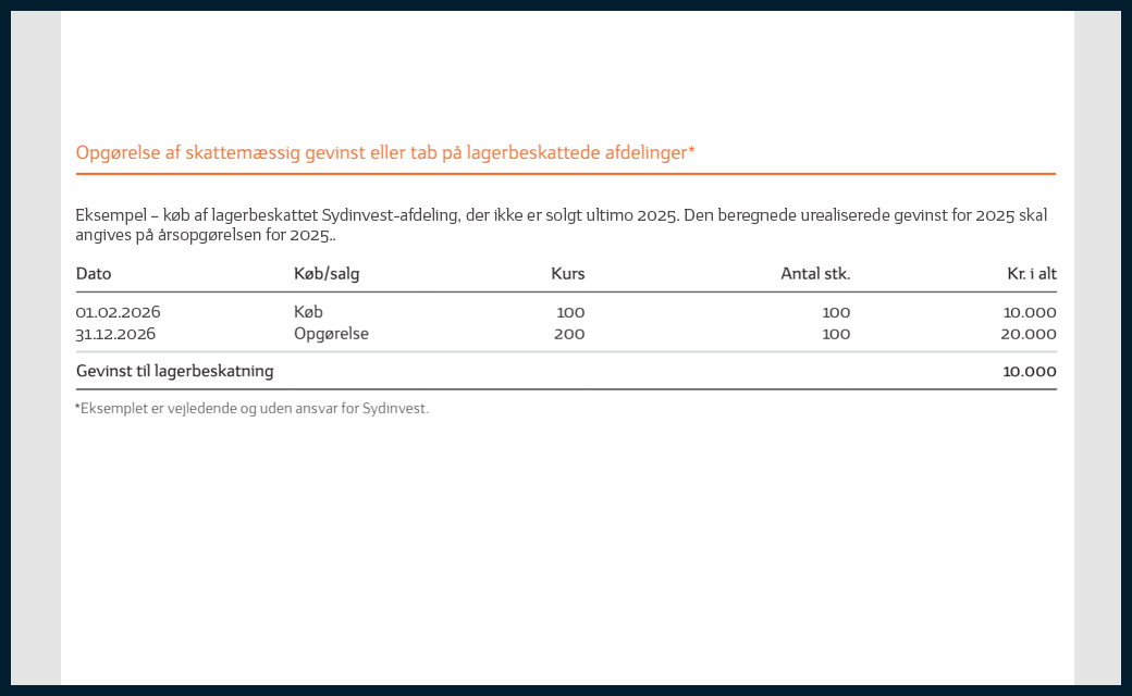 Markér de fonde, du har, og angiv, om du har solgt beviser og/eller modtaget udbytte i 2026. På de næste skridt viser vi, hvordan du udfylder din forskudsopgørelse.